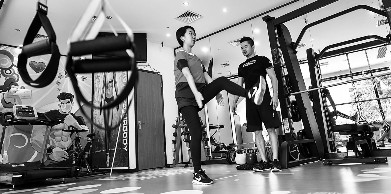 近年来,许多年轻人加入健身行业的创业浪潮中,在引进海外成熟的健身项目基础上,打造适应中国人和中国市场的健身方式,包括团操工作室、私人工作室、自助健身舱等。图为深圳南山区一处住宅区的“悦动圈”健身房,创始人之一黄淼(右)带领学员进行私教课训练。