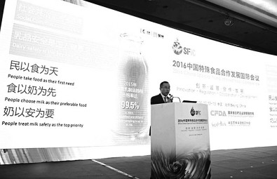 近日,以“创新·监管·合作·发展”为主题的“2016中国特殊食品合作发展国际会议”在京召开。本次会议由国家食品药品监督管理总局主办,中国营养保健食品协会承办。国家食品药品监督管理总局副局长滕佳材出席会议。作为中国乳品企业代表,蒙牛集团总裁卢敏放受邀参会,并做了“整合全球资源,打造中国乳业品牌”的主题演讲。