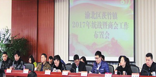 渝北区茨竹镇党委、政府近日召开了2017年度商会专题工作布置会。会议由镇党委书记主持。镇全体机关干部、村(居)书记、主任、茨竹镇商会会员共计150余人参加。