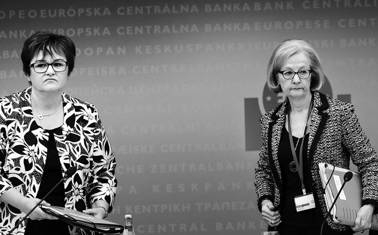 欧洲央行银行业监管委员会主席达妮埃尔·努伊(右)日前表示,不良贷款是欧元区银行业监管的重点,欧元区各银行需拿出切实可行的方案来处理不良贷款,一些成员国也应为此清除法律障碍。图为达妮埃尔·努伊和欧洲央行执委、欧洲央行银行业监管委员会副主席劳滕施莱格(左)在德国出席新闻发布会