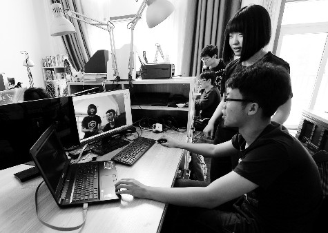 稚气仍显现在陕西第六镜科技文化有限责任公司的两位创始人刘闯和叶雨桐的脸上,但只要一谈起公司开发出的科技成果,他们立刻显现出超越年龄的成熟。2017年1月,“第六镜”突破了技术瓶颈,其人脸识别技术也取得了国际权威评测体系的认可,达到了国际领先水平。图为刘闯(右一)和叶雨桐(右二)在工作室探讨智能系统的相关问题。刘潇/摄