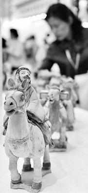 11日,为期5天的第13届中国(深圳)国际文化产业博览交易会在深圳会展中心开幕。本届文博会总展位面积10.5万平方米,吸引了2302个单位参展。图为观众参观泥塑作品《丝路印记》。