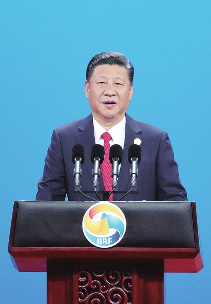 (图)5月14日,国家主席习近平在北京出席“一带一路”国际合作高峰论坛开幕式,并发表题为《携手推进“一带一路”建设》的主旨演讲。新华社记者王晔/摄
