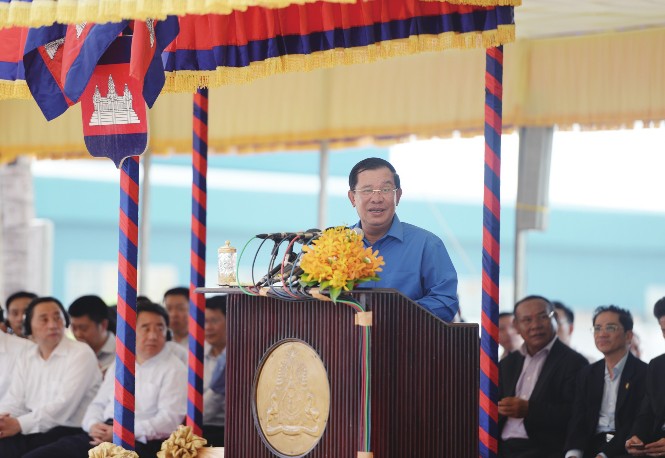 (图)2016年6月7日,洪森首相出席西港特区“百家企业入园”庆典活动,将西港特区视为中柬共建“一带一路”的重要成果。