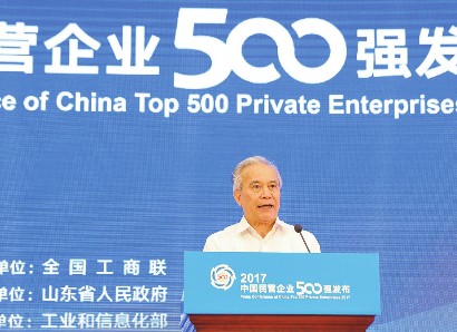 8月24日,2017中国民营企业500强在济南发布。此项活动由全国工商联主办、山东省人民政府承办,工业和信息化部、国家工商总局、中国民生银行支持。全国政协副主席、全国工商联主席王钦敏,山东省委副书记、省长龚正,工业和信息化部原党组成员、中央纪委驻部纪检组原组长金书波分别致辞,中央统战部副部长,全国工商联党组书记、常务副主席徐乐江发布榜单,全国工商联副主席黄荣发布分析报告,国家工商总局副局长、党组成员王江平出席,全国工商联党组副书记、副主席樊友山主持。