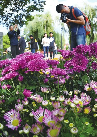 国庆前夕,3万多盆各色菊花把云南昆明大观公园装点得五彩缤纷。道路边、花坛内、草坪上,上百种菊花竞相绽放,为“春城”昆明增添了节日的喜庆气氛。