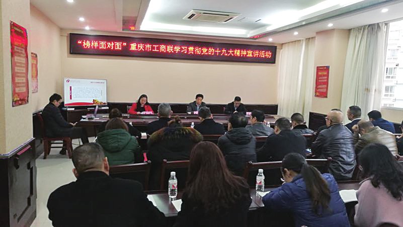 “榜样面对面”党的十九大精神宣讲活动是重庆市工商联根据市委宣传部安排,在全市工商联系统组织开展的系列宣传贯彻党的十九精神的活动之一。为搞好宣讲活动,市工商联制定了活动方案,组建了包括市工商联主席、隆鑫控股董事局主席涂建华在内的12名优秀民营企业家和市工商联党组成员作为成员的宣讲分团,拟用一个月的时间,到区县工商联、商会、企业宣讲33场次。为确保活动效果,市工商联抽调12名机关干部作为联络员,对应服务宣讲团成员。同时,对会场布置、宣讲题纲、"1+X+1"(1即播放一个学习视频,X即按照宣讲题纲进行60分钟的宣讲,主要是“主要精神+专题解读+互动交流”三部分,1即营造氛围,要发放一套宣传资料,现场布置学习挂图)宣讲模式进行了规范和要求。