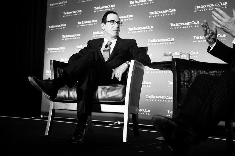 美国财政部长姆努钦12日表示,他对加密货币有两大担忧,一是加密货币是否用于洗钱等非法活动,二是消费者利益是否会受损。图为在美国华盛顿,美国财政部长姆努钦出席华盛顿经济俱乐部的一场活动。