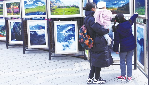 为拓宽农特产品销路,带动贫困农户脱贫增收,重庆市巫溪县于2月2日至4日举行了“牵手脱贫礼好巫溪”巫溪首届年货节活动,现场60余个展位展示来自巫溪各乡镇的特色农副产品,并介绍当地景区的旅游项目。图为人们在年货节上参观巫溪风光摄影展。