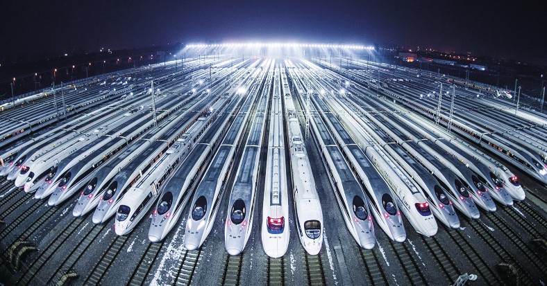 (图)动车组停靠在武汉动车段的存车线上,准备进行检修和保温作业。肖艺九/摄