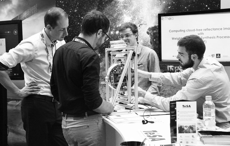 第六届法国图卢兹航天展日前在法国西南部城市图卢兹举办。中国作为本届展会主宾国,将通过主题演讲、圆桌会议、设立展台等形式全面展示中国航天发展成果和中外国际合作前景。图为在法国图卢兹,图卢兹大学学生在展览现场展示其设计的作品模型。