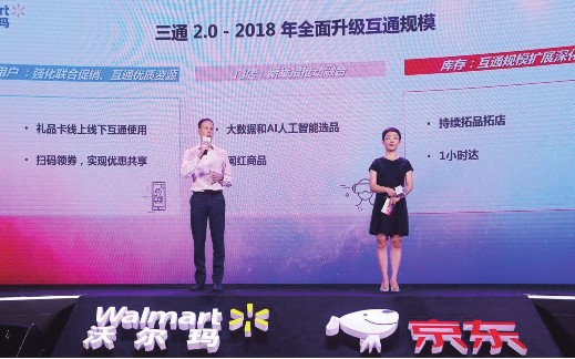 据王笑松介绍,京东和沃尔玛两大零售巨头,掌握着线上线下的渠道优势,拥有强大的大数据分析能力和世界领先的供应链管理体系。双方去年启动了用户、门店、库存互通,今年在此的基础上升级合作,推出代表线上线下融合的“三通2.0”战略。