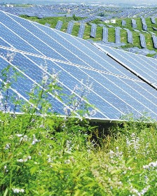 日前,河北省邢台市临城县土寨村20兆瓦光伏扶贫电站并网发电,将为当地667户贫困户带来每年每户约3000元的收入。图为工作人员在临城县土寨村20兆瓦光伏扶贫电站巡检。