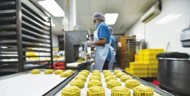 拥有67年历史的吉隆坡老字号“东华饼家”正加紧制作各种口味的月饼,迎接即将到来的中秋节。图为在马来西亚吉隆坡,一名店员在制作月饼。