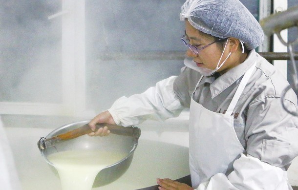 她就是吉林省昌睿食品有限公司总经理卜睿。她说,创业就是把喜欢的东西做成产业。图为卜睿在车间煮豆浆。