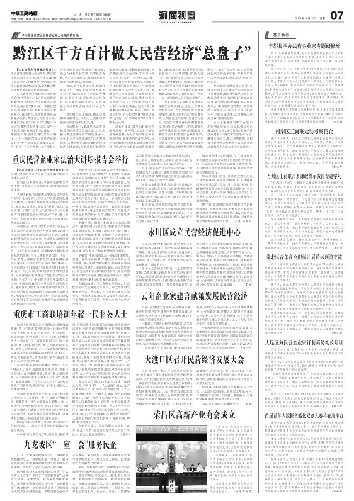 黔江区千方百计做大民营经济“总盘子”