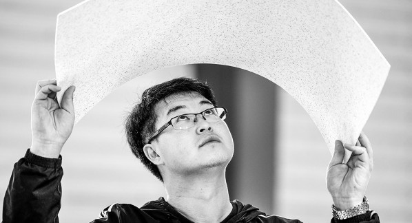 河北省阜城县积极激发民营企业创新活力,促进环保建筑材料业高质量发展。该县鼓励环保生态建材加强产品创新研发,生产出质量轻、稳定性高、耐候性强、材质颜色和质感多样化的柔性石材,广泛应用于各类建筑装饰行业,为建筑行业发展注入新动能。图为阜城县一家玻纤制品企业职工在检验柔性石材多彩理石。