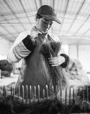 近年来,为解决易地扶贫搬迁贫困户的就业问题,湖北恩施土家族苗族自治州来凤县在扶贫安置点附近设置棕丝、香菇、蔬菜、茶叶加工等“扶贫微工厂”,帮助有劳动能力的困难群众就近实现就业,拓宽致富门路。图为在恩施来凤县翔凤镇狮立坪村安置点附近的棕丝厂,村民在筛选棕丝。唐俊/摄