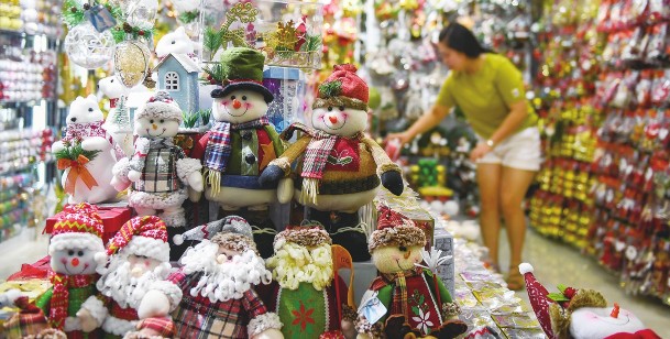 近期以来,浙江省义乌市小商品市场迎来圣诞订单旺季。拥有400多家圣诞用品生产企业的义乌市已成为全球最大的圣诞用品集散地,约占全球60%的市场份额。图为义乌国际商贸城的一家商店陈列着各式圣诞商品。