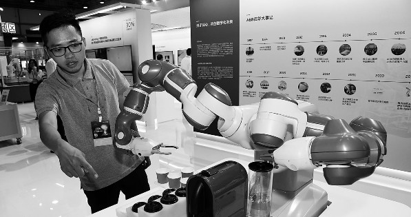 25日,2019青岛国际软件融合创新博览会开幕,本届展会包括软件与信息通信技术成果展、平行论坛、工业互联网APP创新应用大赛和系列发布对接活动四大板块内容,参观者可近距离感受智慧城市、智能制造、信息消费、数字经济等领域的最新创新成果。图为参展企业工作人员在展会上演示一款精密工业机器人。
