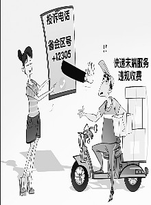据介绍,消费者遇到快递末端违规收费的情况,可拨打省会区号+12305进行投诉,各级邮政业申诉中心将接听消费者电话及投诉问题线索进行单独记录,并移交邮政管理部门,邮政管理部门将及时调查处置;事实清楚、证据充分的,将以零容忍的态度坚决督促企业整改。曹一/作