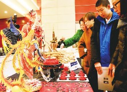 近日,上海市食品行业职业技能竞赛(西式面点师项目)暨食品行业产品展示活动在上海118广场举行,现场西式糕点制作、特色食品非物质文化遗产项目互动和食品企业产品展示同台亮相,迎接新年。图为参观者在企业产品展示台前驻足观看。