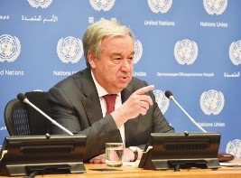 联合国秘书长古特雷斯4日对中国抗击新型冠状病毒感染肺炎疫情所作努力表示充分肯定,呼吁国际社会团结一致,避免歧视行为。图为在位于美国纽约的联合国总部,联合国秘书长古特雷斯出席一年一度的联合国秘书长新年记者会。
