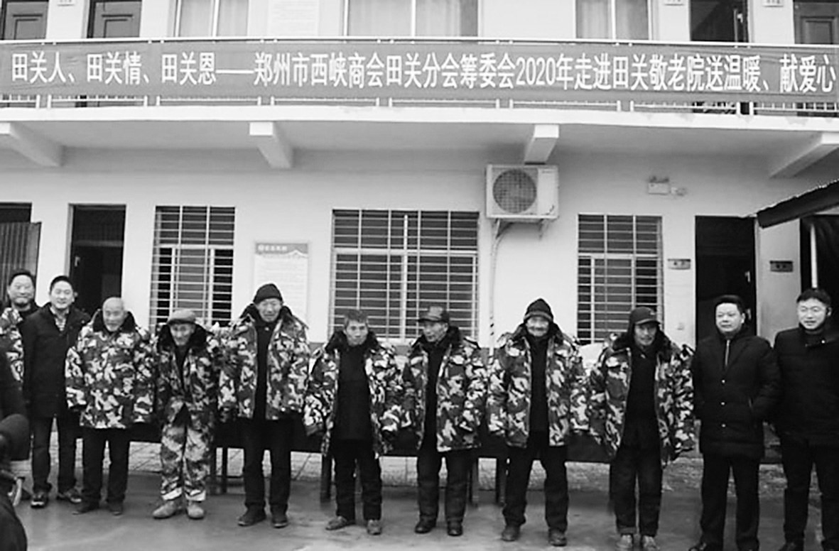 【本报南阳讯】日前,郑州市西峡商会党支部书记蒋龙群、监事会主席曹诚林、常务副会长李荣斌、副会长王付成与田关籍在郑创业人员冒着严寒回到河南省南阳市西峡县,参加田关镇在外人员故乡行活动座谈会,并走进田关镇敬老院看望慰问老人。