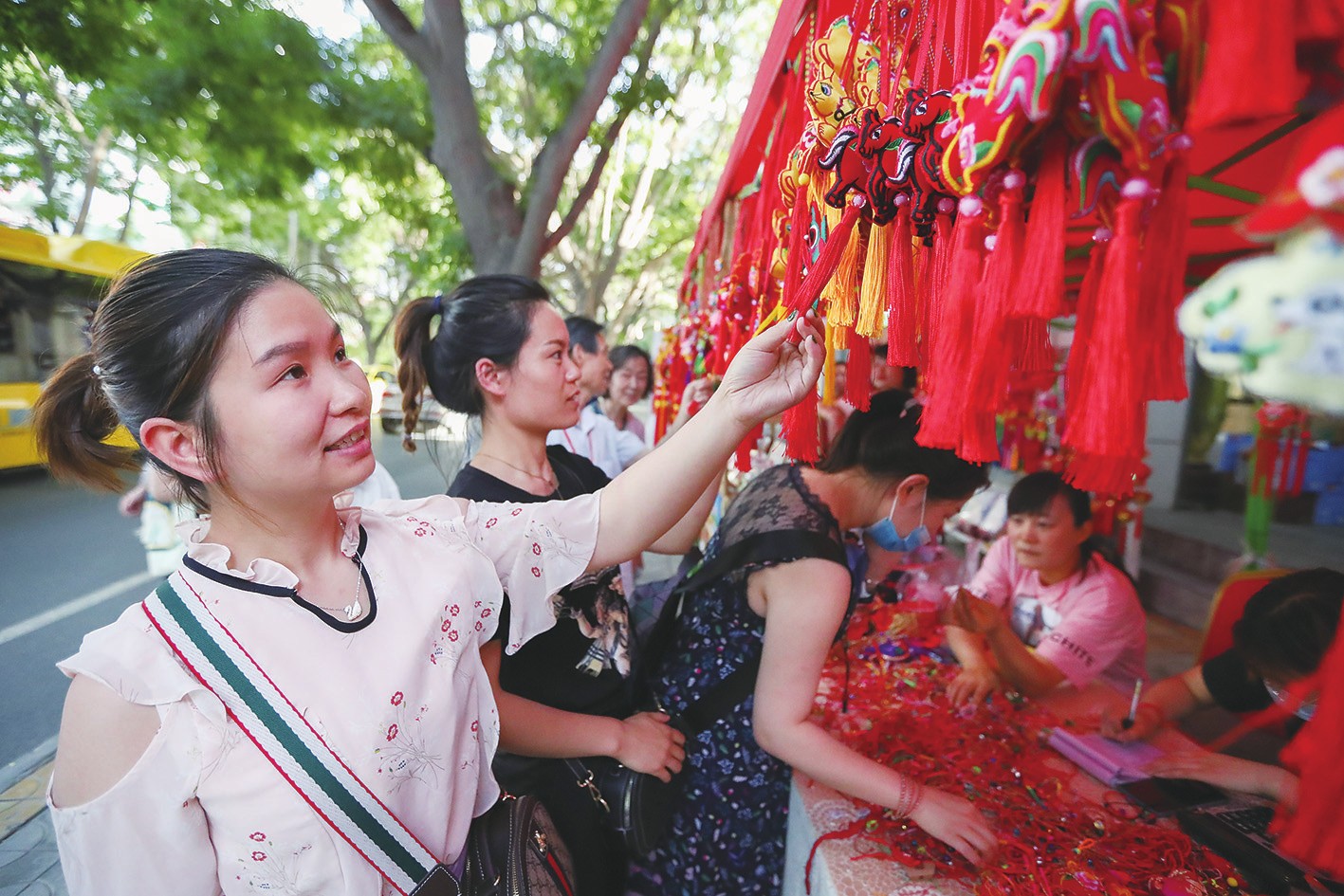 端午节将至,甘肃省兰州市城关区街边的庆阳香包摊位吸引许多市民驻足选购。庆阳香包是甘肃庆阳端午节特色民俗物品,外部是传统刺绣,香料由中草药配置而成,寓意防病驱邪、祈祥纳福。