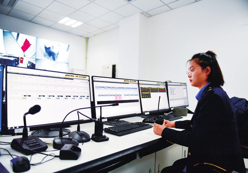 由中国中铁建工集团历时三年建设的格尔木火车站新站目前已建设完成,即将投入运营。图为在新建的青海省海西蒙古族藏族自治州格尔木火车站,工作人员在综控室内检查设备。