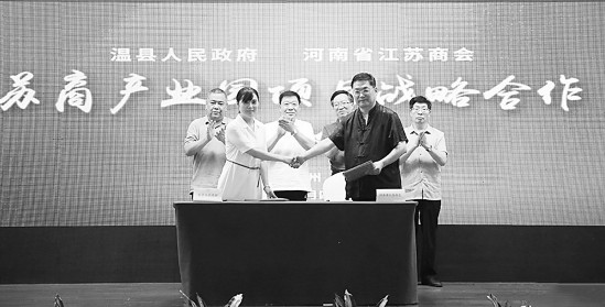 随后,在全体与会人员的见证下,王欢欢代表温县人民政府与河南省江苏商会签订战略合作协议。