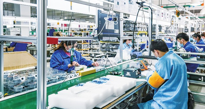 图为天津怡和嘉业医疗科技有限公司(BMC怡和嘉业)的生产车间里,工作人员在加紧生产。