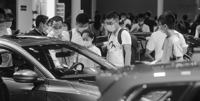 2020第十八届华中国际汽车展览会在武汉国际博览中心举行,参展品牌达60余个,参展新车800余辆,涵盖传统燃油车、新能源·智能网联汽车和房车等车型。图为市民在车展上参观。