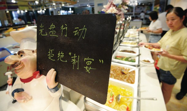 河北省一些餐饮企业开展“‘光盘行动’拒绝餐饮浪费”宣传活动,号召消费者用实际行动加入到“光盘行动”中,杜绝“舌尖上的浪费”,让厉行节约成为人人崇尚的美德。图为近日河北省邯郸市丛台区一家自助餐厅。郝群英/摄