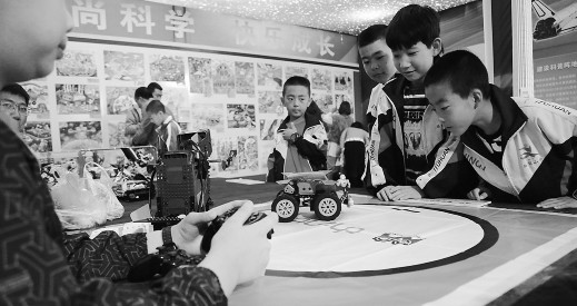 日前,2020年甘肃省科技活动周在平凉市启动。活动周举办科技战疫成效展示、科普展览互动体验、平凉市首届科技创新成果展等11项活动。图为8月23日,小朋友在科技活动周上观看科普展品。