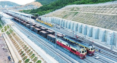 近日平潭海峡公铁大桥启动荷载试验。福平铁路平潭海峡公铁大桥荷载试验,主要包括静载试验和动载试验。据悉,此次进行的大桥荷载试验为静载试验,检验大桥的整体工作性能,为验收交付提供依据。图为近日停靠在福州市长乐南站准备参加荷载试验的两列货运重载列车。