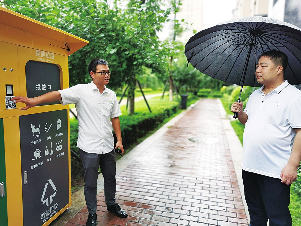 赵延庆一行先后实地参观考察了宋氏集团的垃圾回收智能分类设备示范点、垃圾分类环保屋、积分兑换便民超市、城市资源循环利用基地和集团总部,详细了解了企业的服务流程、分拣流程、环保屋和智能设备的布点建设情况以及大数据管理平台。