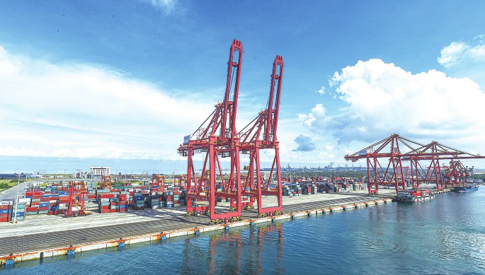 洋浦-南太-澳洲集装箱航线28日上午在洋浦小铲滩码头正式开通运营,这是海南自由贸易港开通的首条洲际航线,进一步完善了洋浦外贸航线布局。图为海南洋浦小铲滩码头。