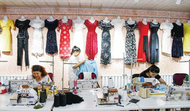 2014年,新疆共有建档立卡贫困人口77.9万户、308.9万人,贫困村3666个,贫困县32个。截至2019年,全疆累计脱贫292.32万人、退出3107个贫困村、摘帽22个贫困县,贫困发生率由2014年的19.4%降至1.24%。其中,南疆4地州累计脱贫251.16万人、退出2683个贫困村、摘帽16个贫困县,贫困发生率由2014年的29.1%降至2.21%。“两不愁三保障”突出问题基本解决,贫困家庭义务教育阶段孩子因贫失学辍学实现动态清零,贫困人口基本医疗保险、大病保险参保率均达100%,易地扶贫搬迁任务全面完成,贫困群众生产生活条件得到大幅改善。图为在新疆尉犁县达西村,一家服装缝纫专业合作社的工人在制作服装。