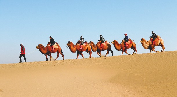 从12月1日起至2021年3月31日,敦煌市推出部分景区门票半价、宾馆房费“五折”等多项冬春游优惠措施,吸引游客。图为游客在甘肃省敦煌市鸣沙山月牙泉景区游览。