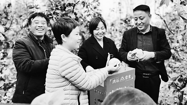 今年以来,河南省商丘市梁园区委统战部积极动员引导广大统战成员通过“以购代销”“以买代帮”的方式参与消费扶贫,采购带贫企业的山药、苹果、草莓、红梨等农副产品,累计采购金额30余万元,帮助企业和农户克服疫情影响,稳定贫困群众增收渠道,得到了社会各界一致好评。图为梁园区委统战部引导区工商联会员企业代表到水池铺乡张屯村农户陈俊河的果园里采购晚熟红梨,帮助农户销售农产品。