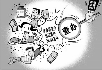 在落实食品药品安全“四个最严”要求专项行动期间,全国市场监管部门查办涉食品安全违法案件28.48万件,罚没款27.25亿元;药品监管部门查办药品、化妆品和医疗器械领域违法案件10.77万件,罚没款18.40亿元;检察机关批准逮捕涉食品药品安全犯罪案件3945件7298人,起诉8791件17066人。