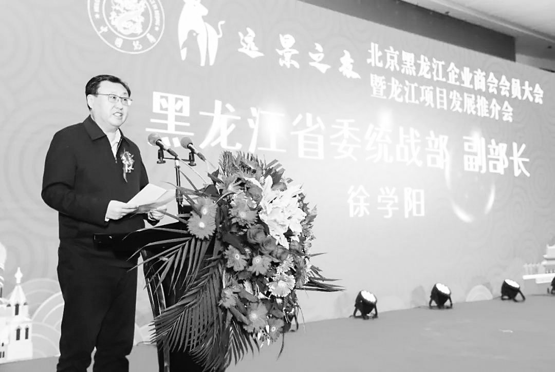 徐学阳表示,现代化新龙江建设需要大家鼎力支持。“北京黑龙江企业商会作为宣传推介黑龙江、展示树立黑龙江良好形象的重要窗口,一定要充分利用这个特殊优势,讲好龙江故事,传播龙江声音,当好招商大使,把黑龙江储备的丰富资源宣传出去,把黑龙江盛产的绿色有机食品展示出去,把黑龙江天然的生态旅游项目推介出去,把黑龙江全面振兴、全方位振兴的愿景传播出去,不断拓宽推介领域,帮助家乡开拓更广阔的市场,为更多的龙江产品‘走出去’作出更大贡献,努力让更多地区了解黑龙江、认同黑龙江、投资黑龙江,为建设现代化新龙江增添新动力、释放新活力。”