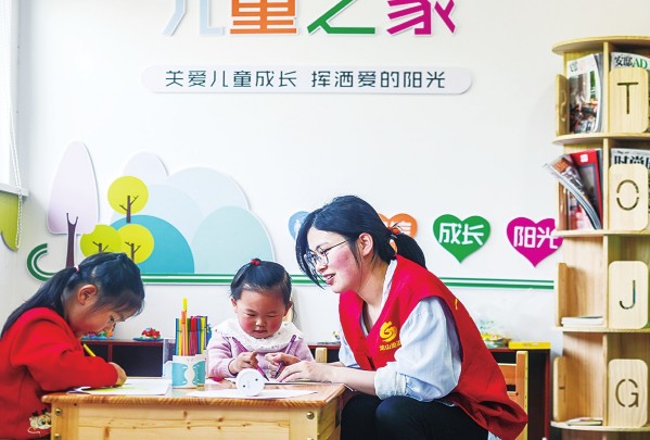近年来,浙江省长兴县整合政府和社会资源,因地制宜推进示范型儿童之家建设。截至目前,全县已建成运营示范型儿童之家24家,结对覆盖辖区内所有困境儿童和留守儿童。图为浙江省湖州市长兴县龙山街道玄坛庙居民区儿童之家内,两名儿童参加课外绘画培训。儿童之家内设有亲情互动区、阅读区、心理辅导区和舞台演出区等,通过政府购买服务的方式聘请专业人员,结合志愿者服务,为周边村子和社区提供儿童临时照料、课后托管、游戏娱乐、心理咨询等服务。