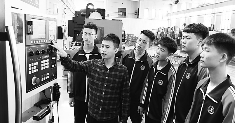 近年来,河北省河间市职业教育中心以就业市场需求为导向,积极优化职业教育结构和布局,通过与企业联合办学,提高学生动手能力,有针对性地培养“订单式”职业人才,拓宽毕业生就业渠道。图为日前河间市职业教育中心教师在河间市一家企业为学生讲解机床实操。