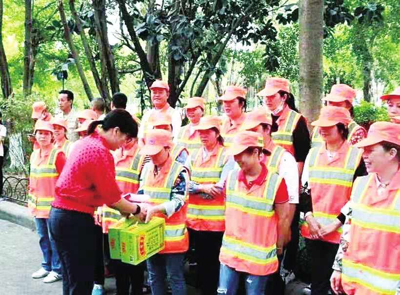 黄彩雪主席表示,百色正在开展创建国家卫生城市、巩固创卫成果行动,广大一线环卫工人不顾百色的炎炎烈日,终日不辞劳苦奋斗在一线,为百色的干净整洁做贡献、出力量,值得尊敬。黄彩雪在感谢环卫工人们辛勤付出的同时,也对各商会和企业对活动的大力支持表示感谢,希望以此次活动为契机,在全社会营造支持环卫工作、尊重环卫工人劳动、自觉维护城市环境卫生的良好氛围,形成人人互相理解、互相支持的社会新风尚。