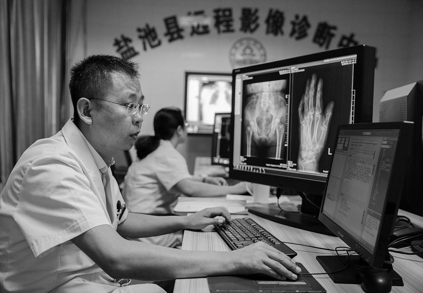 宁夏盐池县是革命老区,因产盐,盐池县曾成为当时陕甘宁边区的经济中心。如今,盐池县已基本不再产盐,以滩羊、黄花菜为代表的特色产业正生机勃勃。近年来,盐池县还充分挖掘文化旅游资源,发展全域旅游。图为宁夏盐池县人民医院医生在进行远程影像诊断。