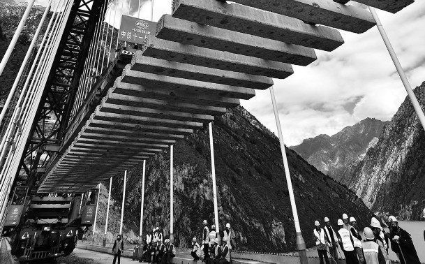 据中国国家铁路集团有限公司介绍,拉萨至林芝铁路将于6月25日开通运营,复兴号高原内电双源动车组同步投入运营,拉萨至山南、林芝最快1小时10分、3小时29分可达。图为中铁十一局工程技术人员在拉林铁路藏木特大桥上铺轨。