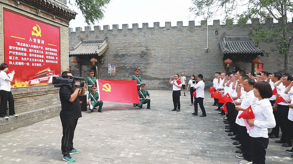 (图1)2020年7月1日,鹏飞集团党总支带领全体党员参观孝义建党第一址