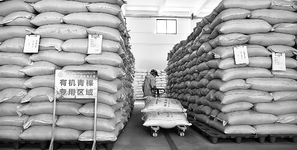 西藏洛隆县盛产青稞,随着生产技术的进步,围绕青稞等农产品的深加工进一步发展。洛隆县洛宗特色产品开发公司生产的糌粑饼干、青稞糕点、青稞挂面等特色产品有效提升了青稞等农产品的附加值,拓宽了产品销路。图为7月24日,员工在洛宗特色产品开发公司的原材料储备库运送原材料。